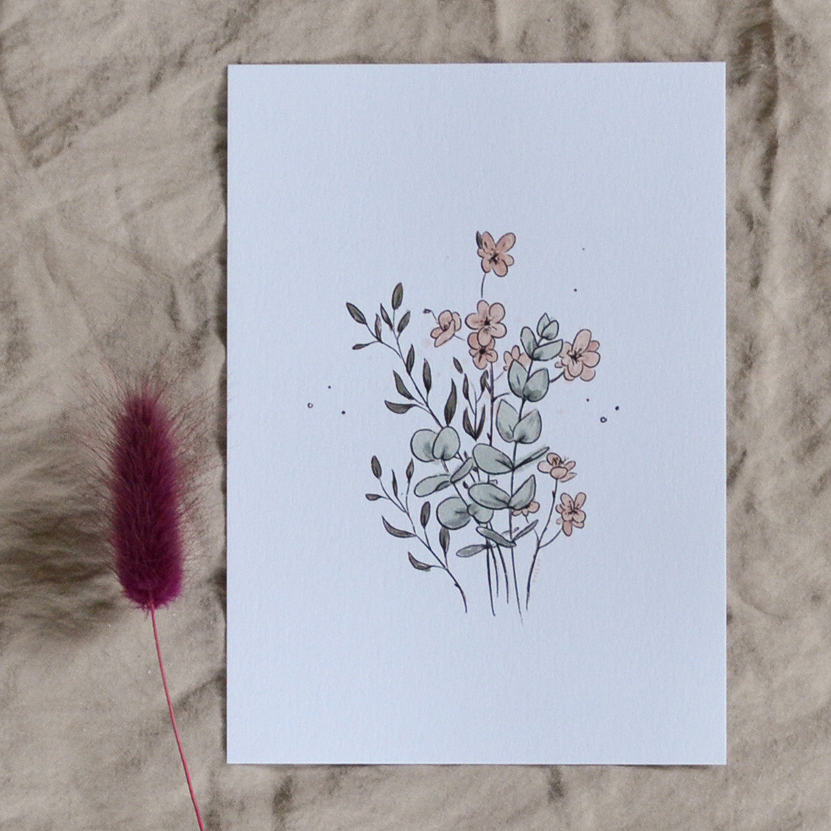 Ansichtkaart met eenvoudige illustratie. Zonder tekst, dus voor veel gelegenheden te gebruiken.