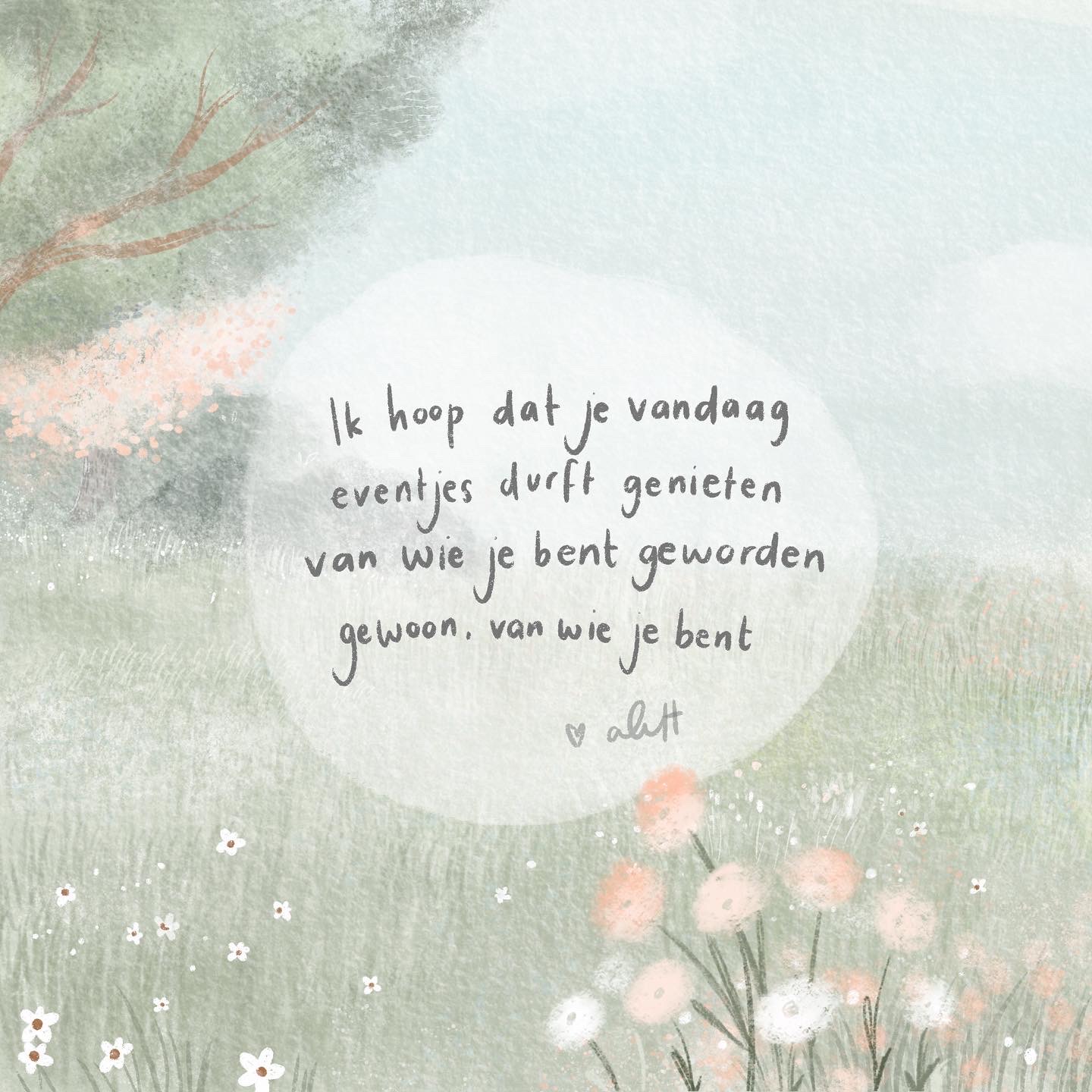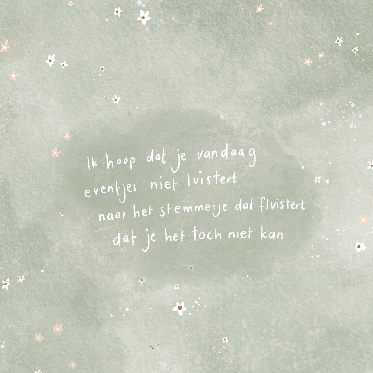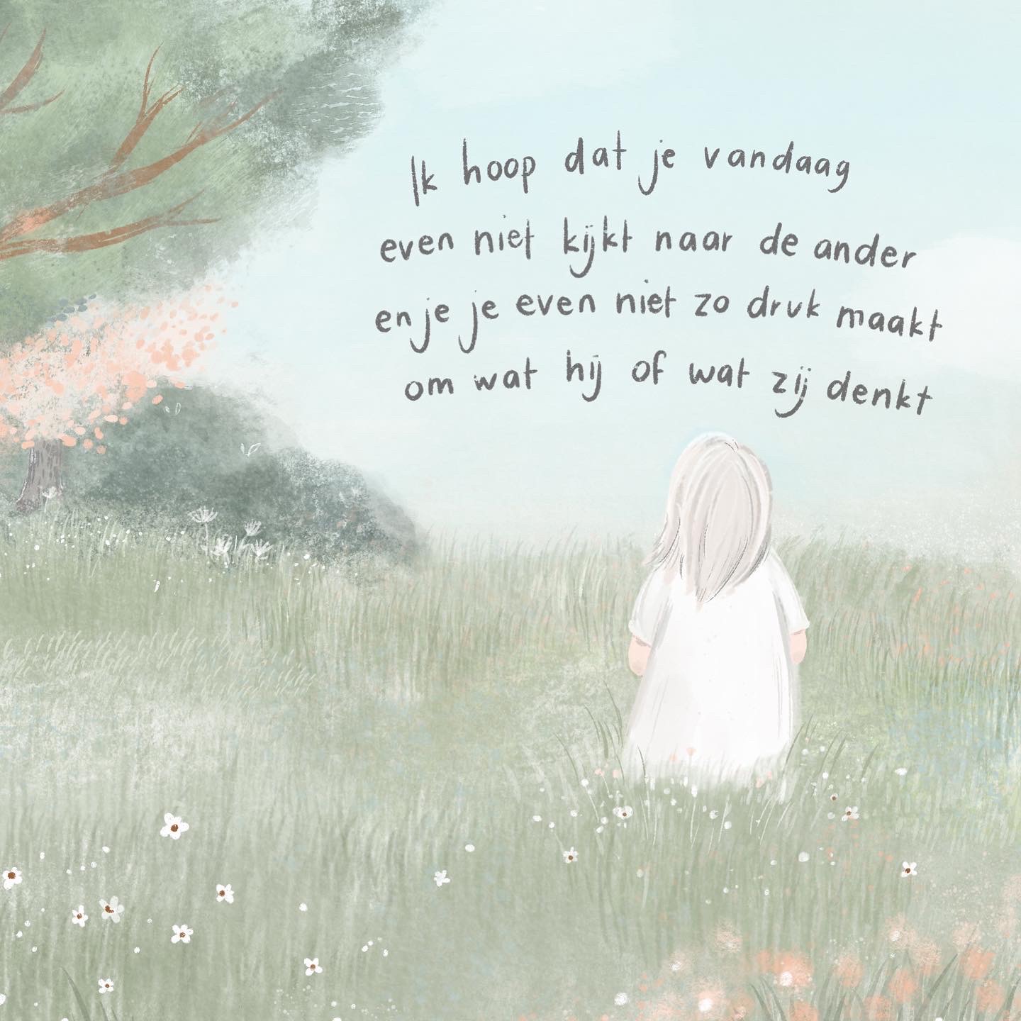 Vierluikje van losee kaartjes (10×10) met gedichtje en illustraties met wensen.