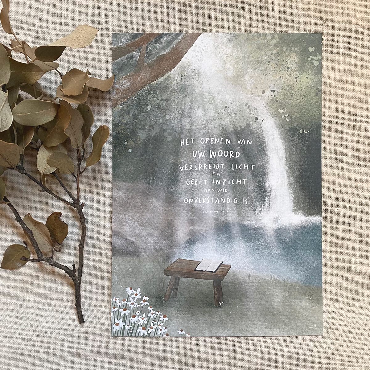 Poster “Licht” op A5 formaat. Met een bijbeltekst uit Psalm 119 in dichtvorm.